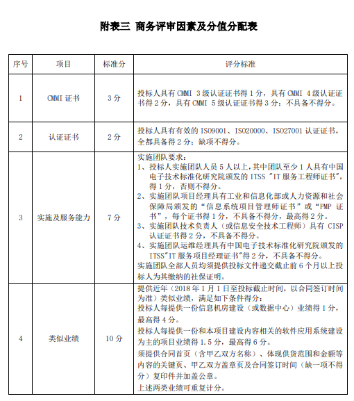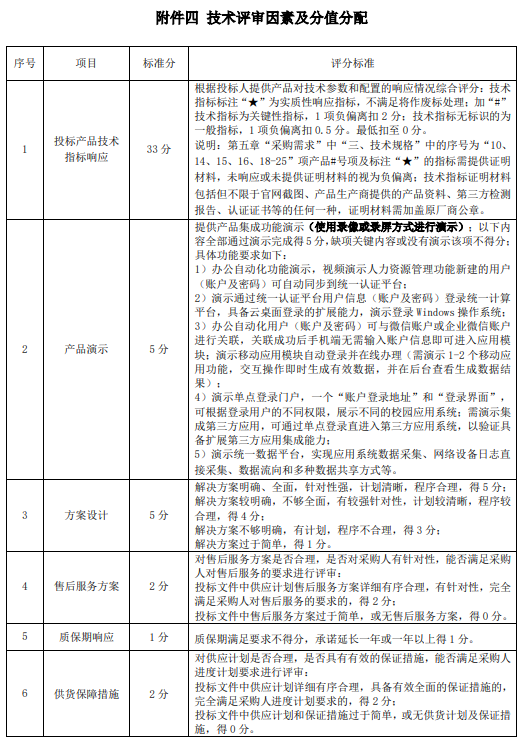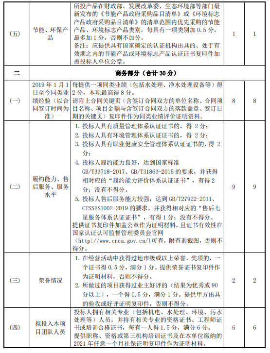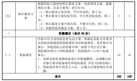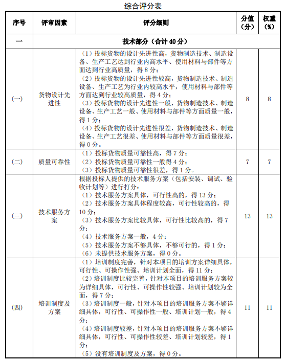 项目评标标准为: